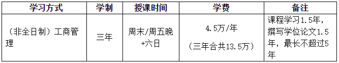 在职学习,每周末集中上课或每月周五晚+周六日集中上课结合;采用学分制,课程学分5年内滚动有效。