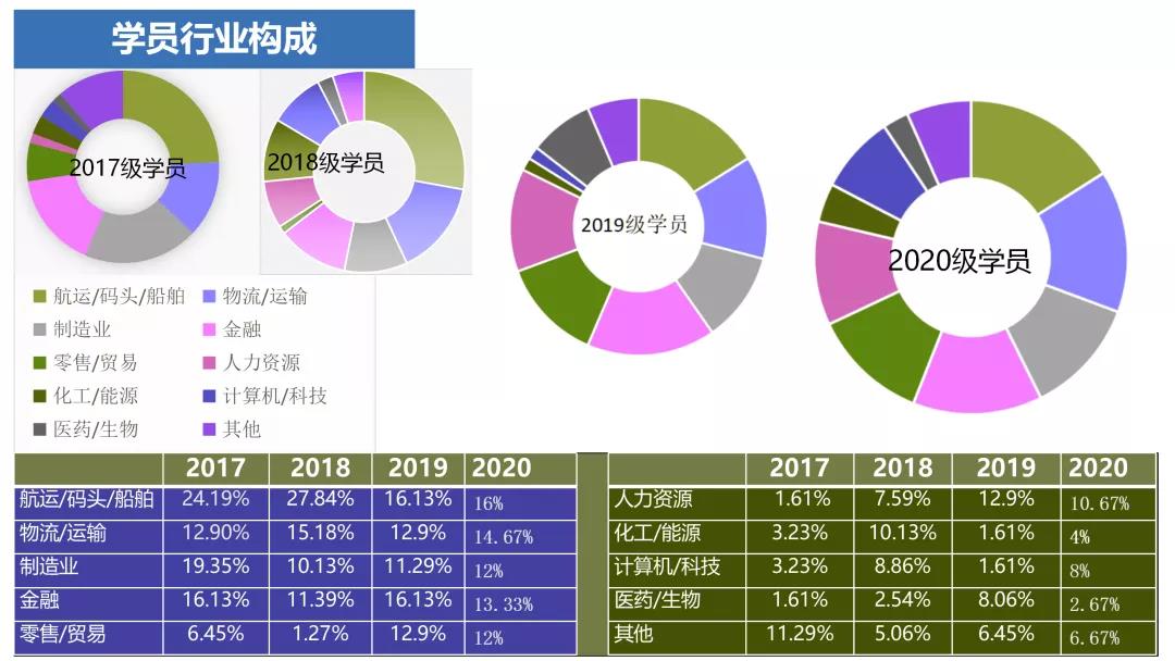 上海海事拼搏(中国)MBA以供应链物流的工商管理教育为主要品牌,重点突出港航优势,兼顾综合管理教育。众多的上海海事拼搏(中国)MBA毕业生已成为大型企业尤其是海运、港口和物流企业的CEO、CFO、C LO及其他高层管理人员。海大MBA教育中心被誉为“航运界的黄埔军校”。截止2021年,我校累计招收MBA学员5000余 人,已获得学位4800余人,境外合作办学MBA近600人,如今,数千名海大MBA/EMBA校友活跃在各行各业的管理岗位上,为国家经济建设贡献着自己的力量,一批优秀毕业生已走上重要领导岗位。