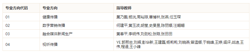 新闻与传播硕士专业学位(Master of Journalism and Communication,MJC)培养以专业实践为导向,重视新闻传播专业实践和应用。分为四个培养方向: