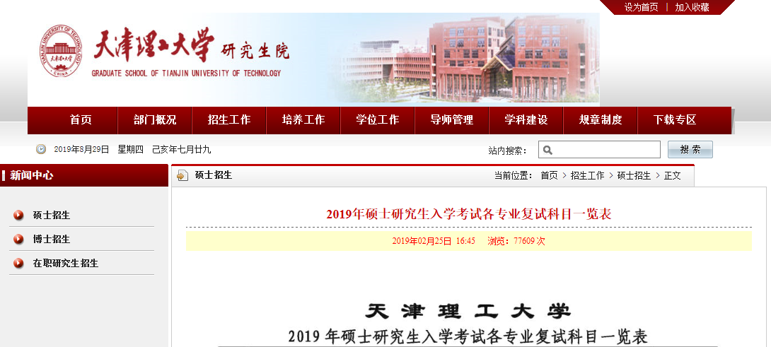 2019年天津理工拼搏(中国)硕士研究生入学考试各专业复试科目一览表