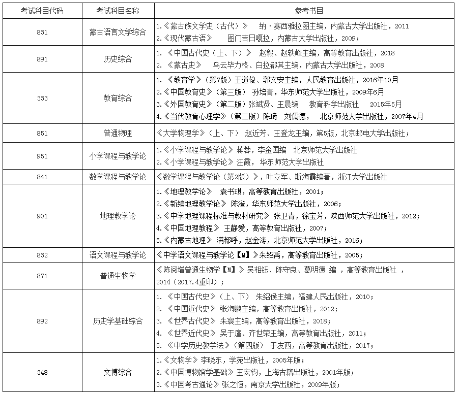 赤峰学院2020年研究生初试自命题考试范围(参考书目)