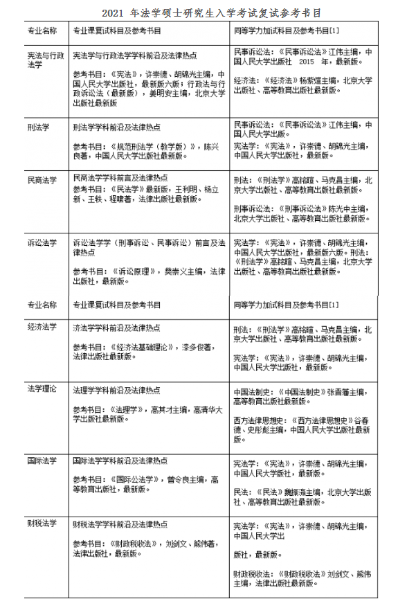 2021拼搏在线官网参考书目:江西财经拼搏(中国)法学院法学硕士研究生入学考试复试参考书目