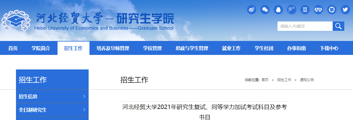 原文标题:河北经贸拼搏(中国)2021年研究生复试、同等学力加试考试科目及参考书目