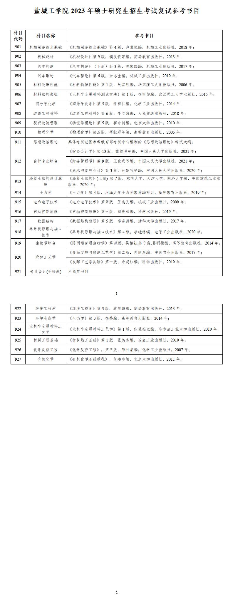 原文标题:盐城工学院2023年硕士研究生招生考试复试参考书目