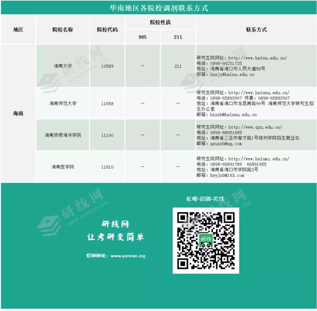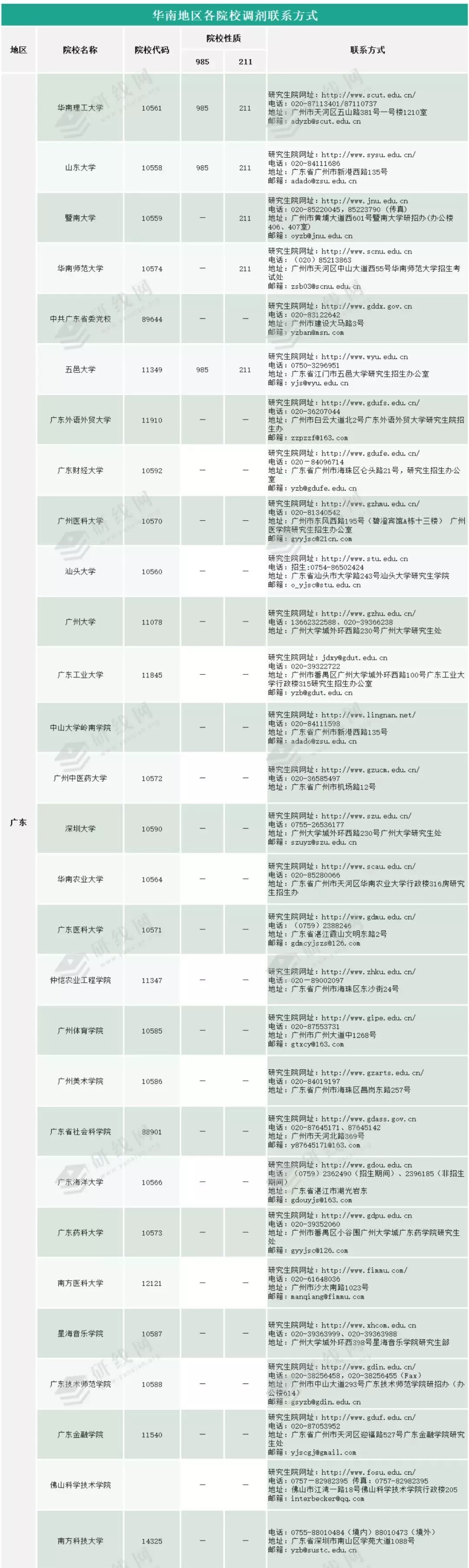 以上就是“2020年华南地区院校调剂联系方式查询”的全部内容,更多调剂相关内容,请关注“调剂信息”栏目。祝您拼搏在线官网成功!