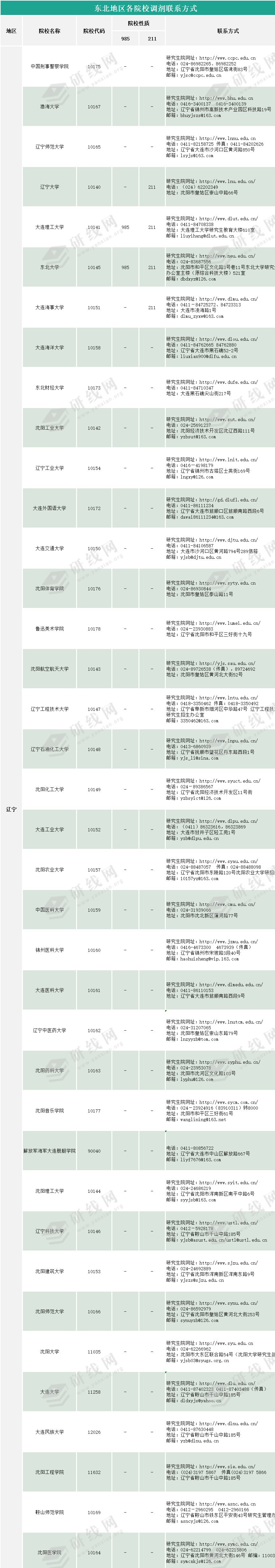 2020年东北地区院校调剂联系方式查询