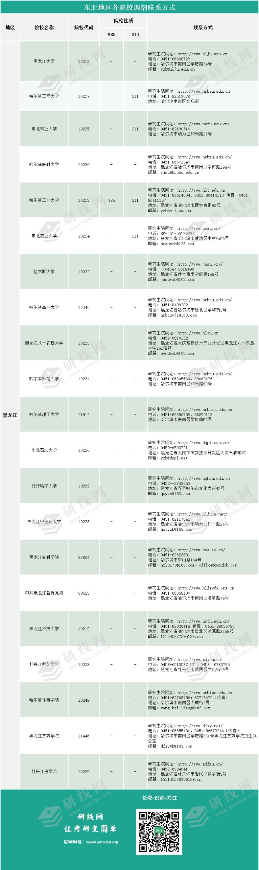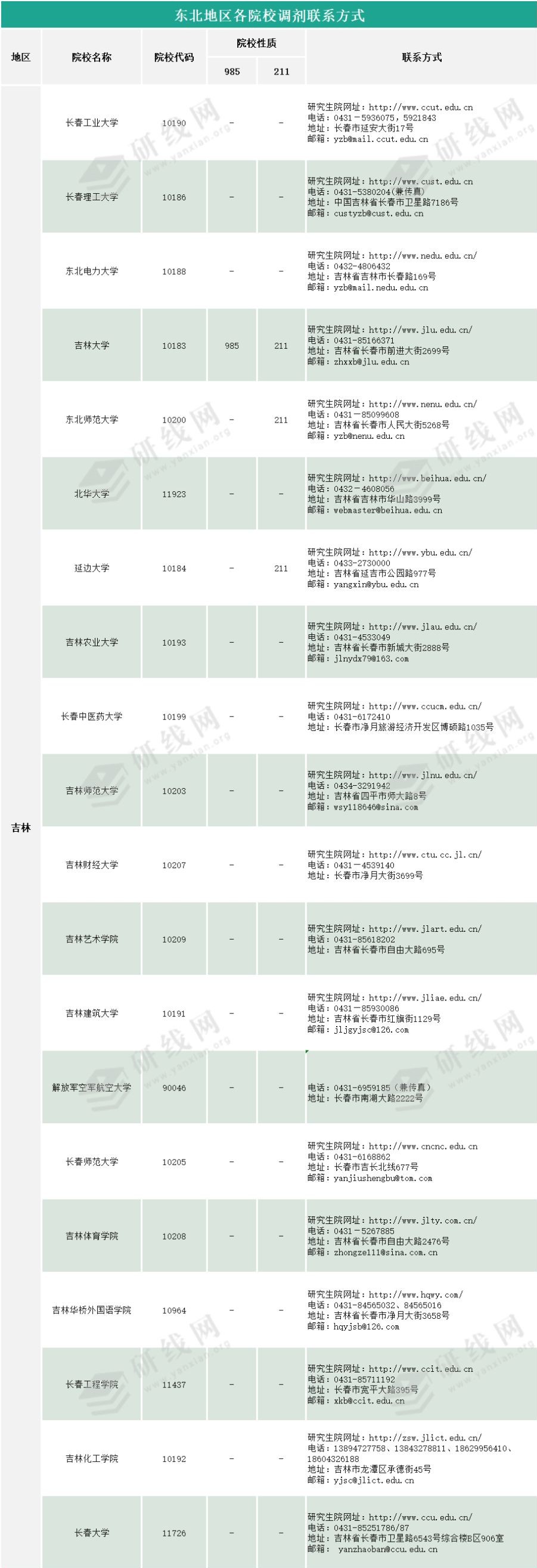 东北地区院校调剂联系方式查询