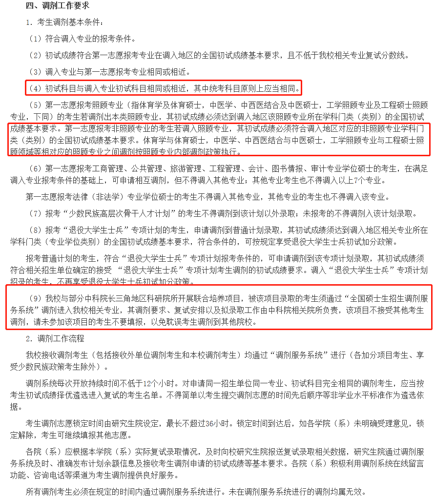 (四)初试科目与调入专业初试科目相同或相近,其中统考科目原则上应当相同。