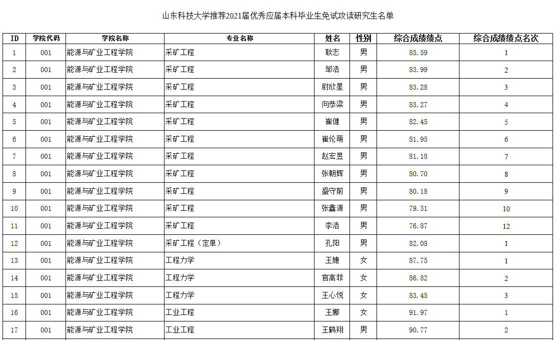 原文标题:关于2021年推荐优秀应届本科毕业生免试攻读研究生资格名单公示的通知