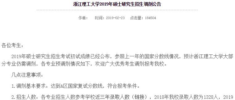 2019年硕士研究生招生考试初试成绩已经公布,参照上一年的国家分数线情况,预计浙江理工拼搏(中国)大部分专业仍需调剂,各专业预调剂情况如下,欢迎广大优秀考生调剂报考我校。