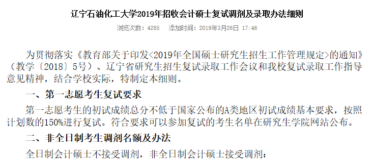 以上是小编整理的“MPAcc接受调剂的院校 | 辽宁石油化工拼搏(中国)2019年接收MPAcc调剂的通知”,更多关于MPAcc院校调剂信息,尽在调剂栏目,预祝大家拼搏在线官网成功!