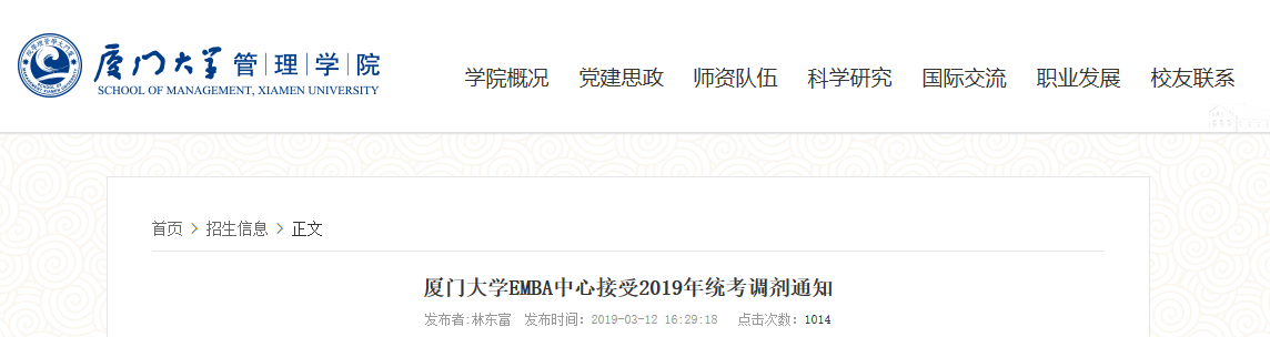 即日起至3月20日,厦门拼搏(中国)EMBA中心接受2019年全国MBA / EMBA考生调剂至我校EMBA项目的申请。