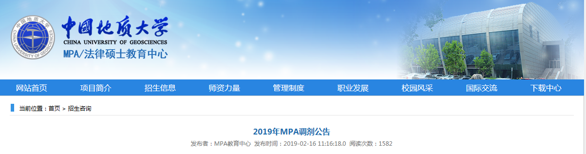 (2)我校MPA官网(http://bm.cugb.edu.cn/mpajyzx/)发布调剂复试通知。