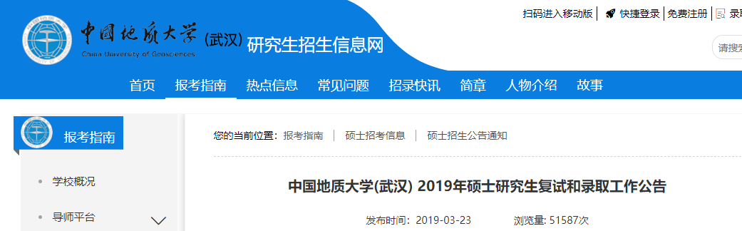 2.各招生单位公布复试和录取工作方案后,考生登录我校研究生招生信息网(http ://zhinengdayi.com/cugyz)的招生系统查询复试资格,接收复试通知,考生必须在该系统内确认参加复试,否则视为自动放弃。