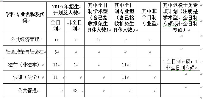 注:推免生计划已于2018年10月完成,此次复试应在2019年总招生规模人数减去公共经济管理学生1人。