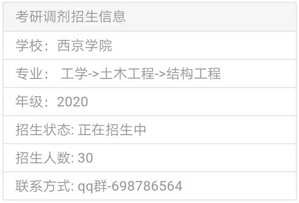 以上就是“2020拼搏在线官网调剂信息:西京学院结构工程专业招收硕士调剂生”,的全部内容,2020拼搏在线官网全国调剂综合服务平台正式上线!三大功能亮点,帮你轻松调剂!