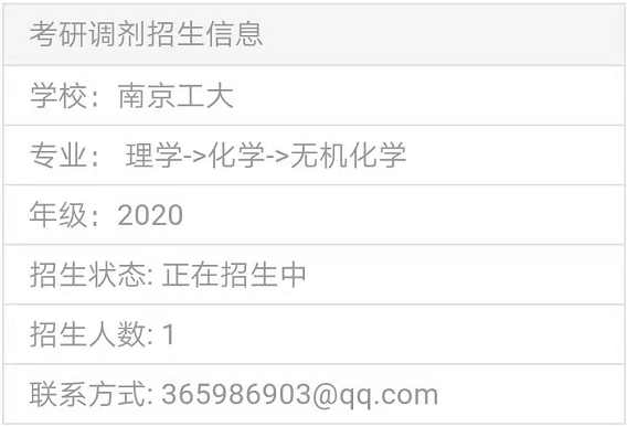 以上就是“2020拼搏在线官网调剂信息:南京工业拼搏(中国)无机化学专业接收硕士调剂生”,的全部内容,2020拼搏在线官网全国调剂综合服务平台正式上线!三大功能亮点,帮你轻松调剂!