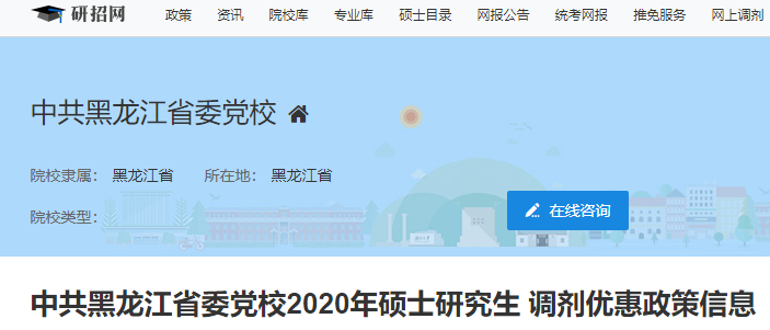 2020拼搏在线官网调剂信息:中共黑龙江省委党校2020年硕士研究生调剂信息”的相关内容,希望对大家有所帮助!