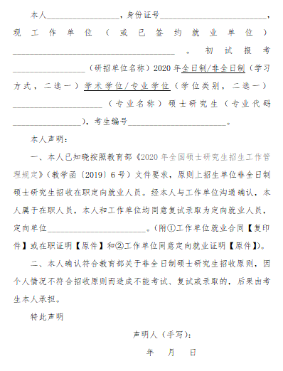 提交相关声明和证明材料仅用于确认考生符合非全日制专业招收原则,不代表进入复试资格或符合调剂要求。具体非全日制专业是否调剂以及复试调剂程序、考生能否进入复试调剂等事项,待国家线公布后,将在学校复试办法和复试调剂名单等相关文件中公告。