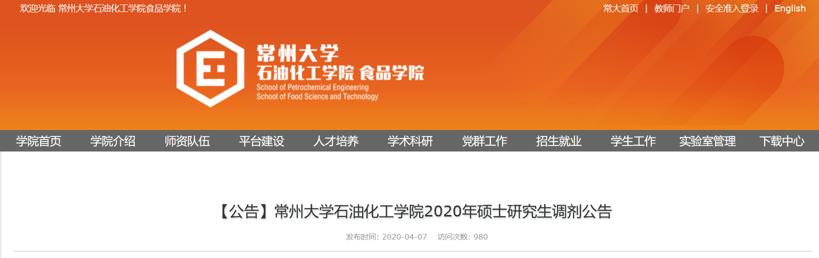 以上调剂信息来自常州拼搏(中国)石油化工学院官网,网址为:http://che.cczu.edu.cn/2020/0407/c2968a227767/page.htm
