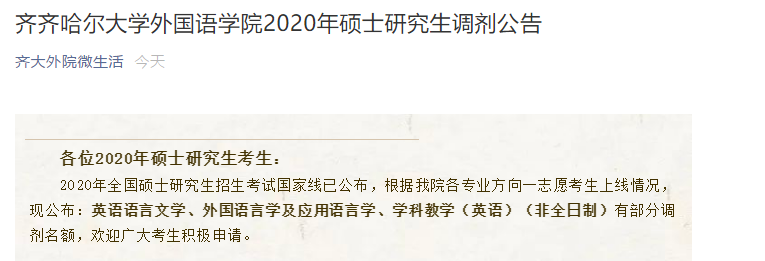 以上就是“2020拼搏在线官网调剂信息:齐齐哈尔拼搏(中国)外国语学院2020年硕士研究生招生调剂信息”的全部内容!更多拼搏在线官网调剂内容,请关注拼搏在线官网调剂信息栏目!