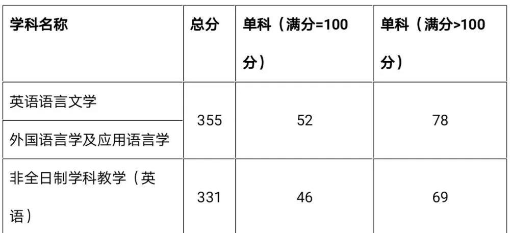 1.考生初试单科、总分数均达到2020年国家A类地区复试分数线(以教育部规定为准),详见下表。
