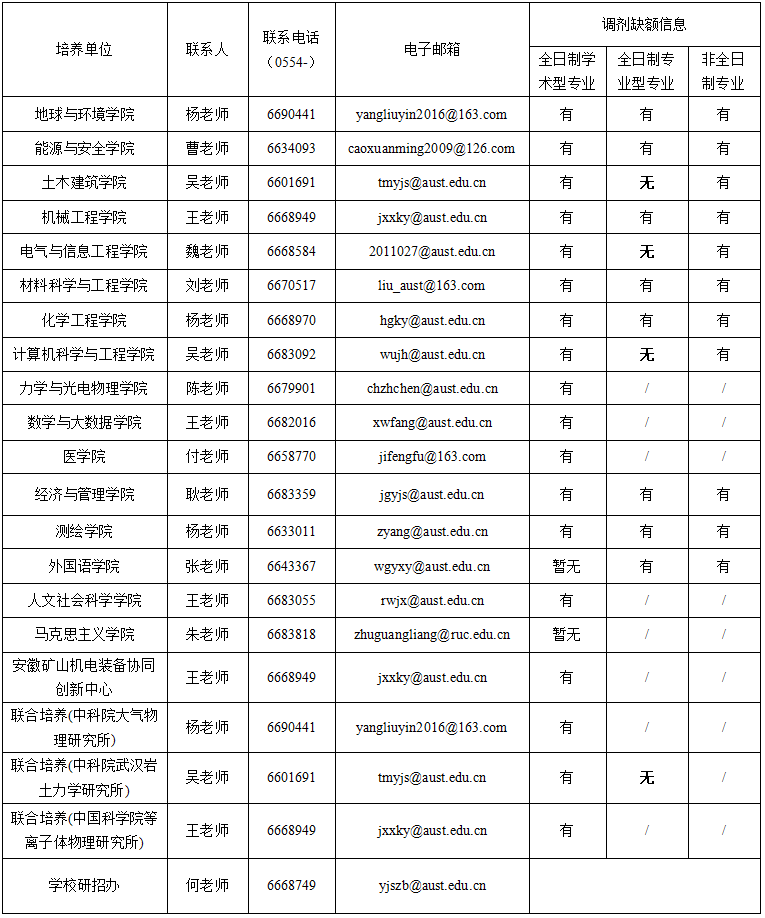 3)我校非全日制硕士研究生原则上招收在职定向就业人员;退役拼搏(中国)生士兵专项计划调剂可咨询学校研招办(0554-6668749)。