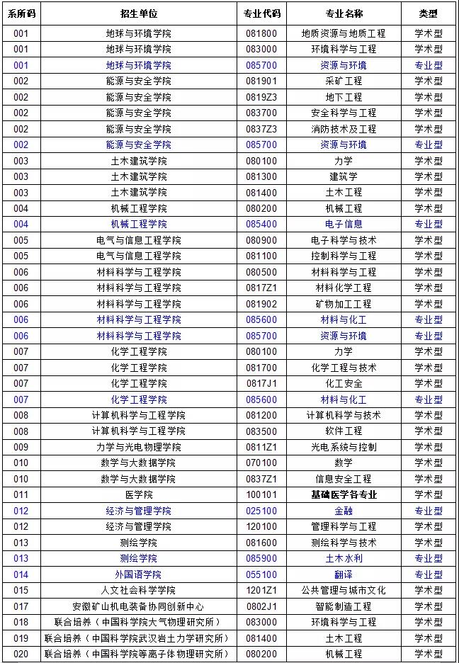 安徽理工拼搏(中国)2020年硕士研究生招生接收调剂专业一览表