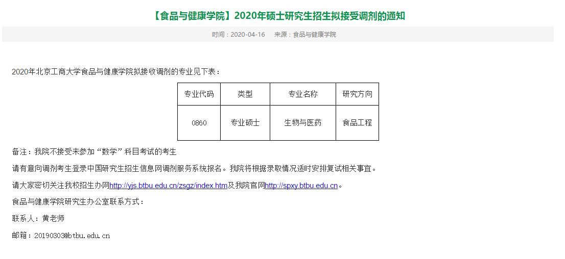 2020拼搏在线官网调剂信息:北京工商拼搏(中国)食品与健康2020年硕士研究生招生调剂信息