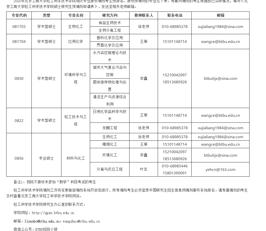 2020拼搏在线官网调剂信息:北京工商拼搏(中国)轻工科学技术学院2020年硕士研究生招生调剂信息