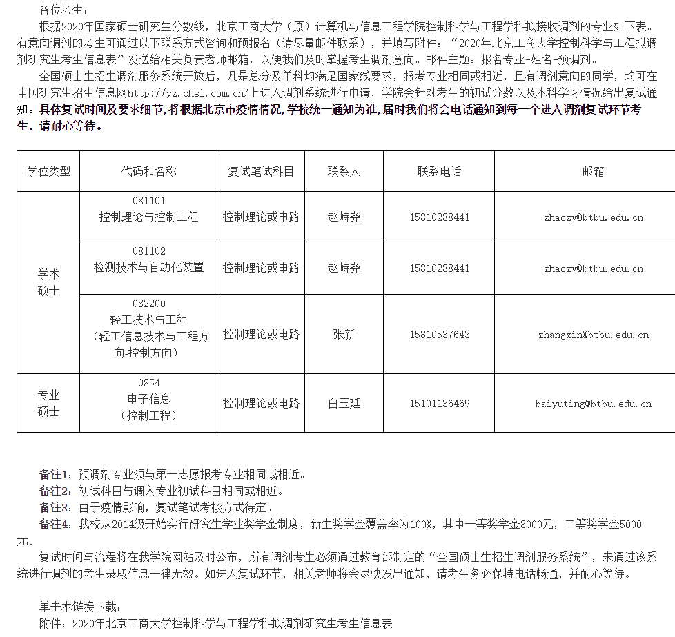 控制科学与工程学科拟调剂研究生信息表