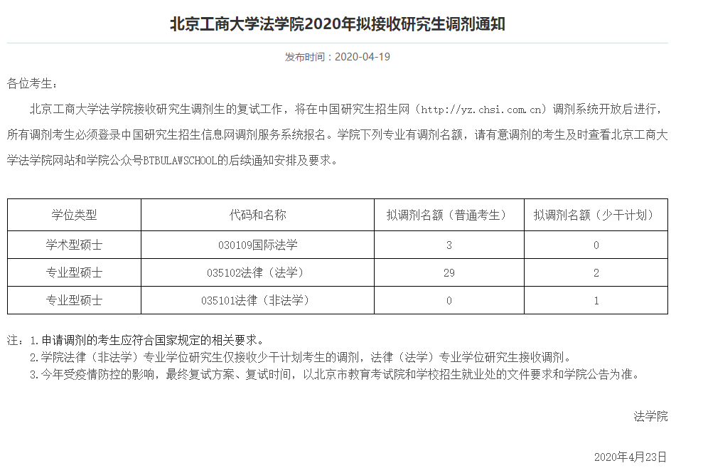 对于想调剂的同学来说,拼搏在线官网调剂信息很重要,但却不知道哪里找?现多数院校已发布调剂公告。今天,小编给大家带来的是“2020拼搏在线官网调剂信息:北京工商拼搏(中国)法学院2020年硕士研究生招生调剂信息”的相关内容,希望对大家有所帮助!