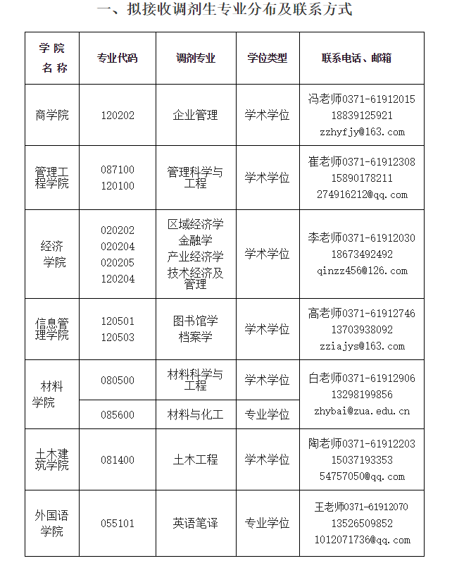 1、全国硕士研究生调剂系统开通前,有意向调剂到我校的考生须填写《郑州航空工业管理学院研究生调剂申请表》进行预报名(下载地址:http://yjsc.zua.edu.cn/info/1057/1446.htm ),并将申请表电子版发到欲调入学院公布的调剂联系邮箱。
