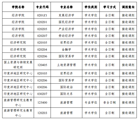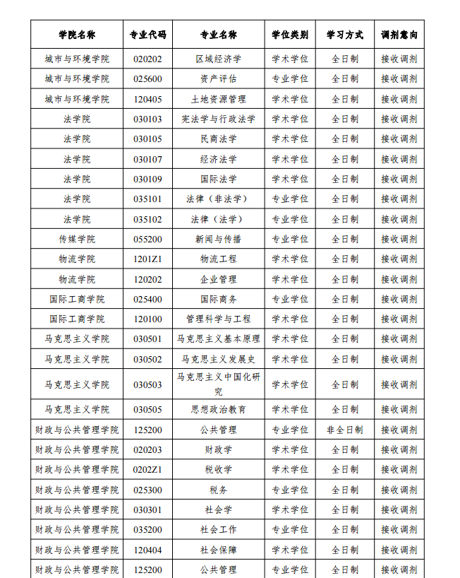 (1)金融、保险和应用统计专业硕士只接受考试科目为数学三的考生调剂,其他专业不限。