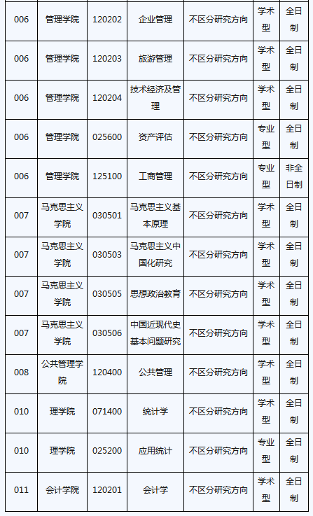 我校2020年硕士研究生招生接受调剂考生的专业信息如下表,非全日制专业原则上只招收在职定向人员。调剂专业缺额信息将通过“全国硕士生招生调剂服务系统” (http://yz.chsi.com.cn)(以下简称“调剂系统”)向考生公布,以调剂系统公布为准。