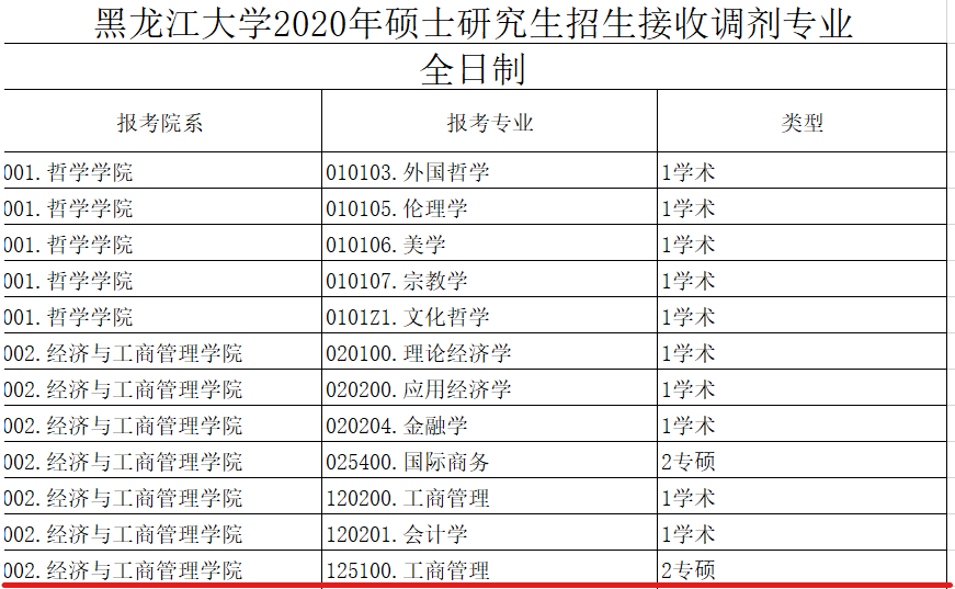 原标题:黑龙江拼搏(中国)2020年硕士招生拟接收调剂专业信息公告