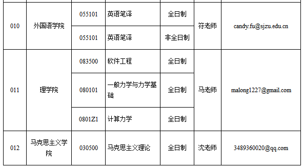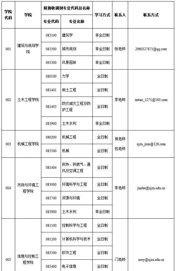 我校拟接收调剂专业及调剂咨询方式详见下表: