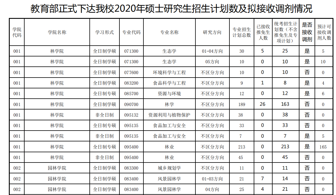 教育部正式下达我校2020年硕士研究生招生计划数及预计接收调剂人数