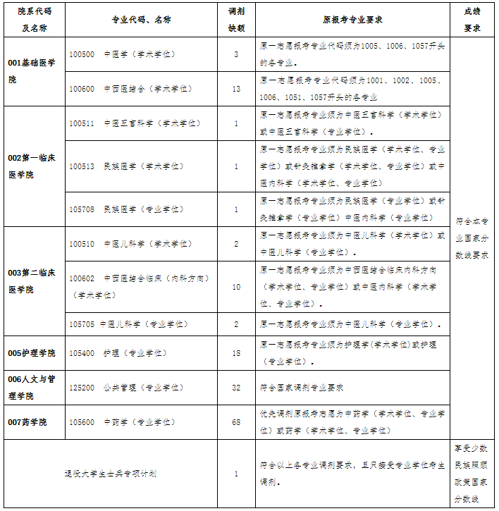 根据教育部有关文件精神,结合我校招生计划,经学校研究生招生工作领导小组审议通过,拟对我校2020年硕士研究生招生接收调剂考生专业及相关要求公告如下: