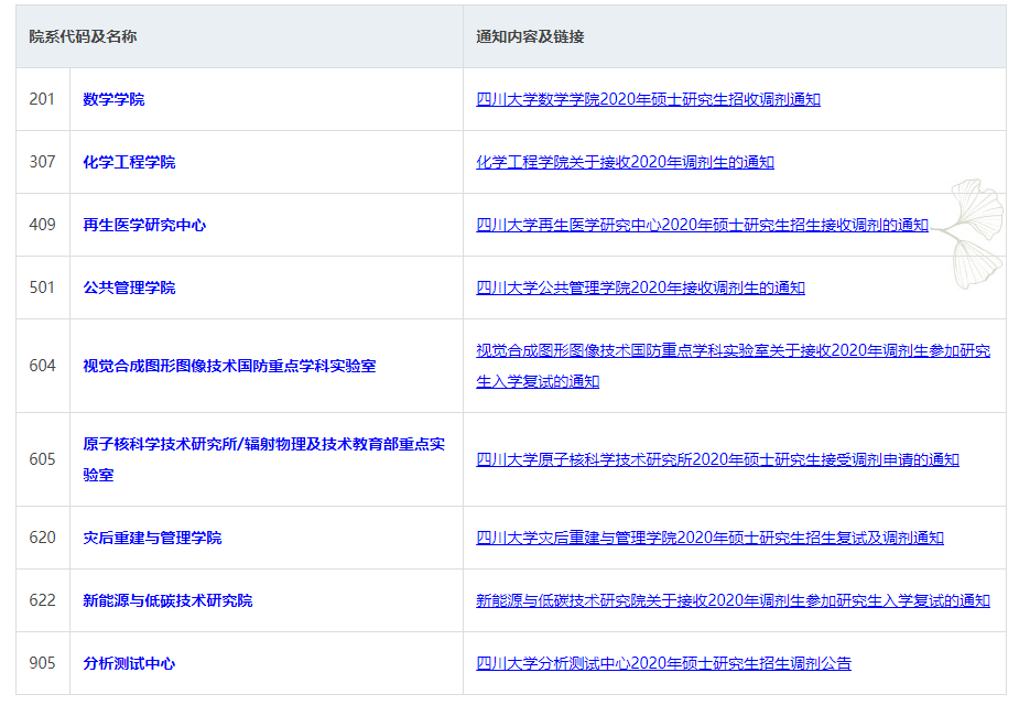 原标题:四川拼搏(中国)2020年各院系所硕士研究生调剂通知