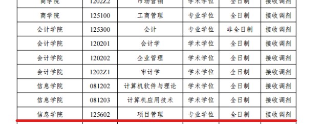 (3)第一志愿报考工商管理、公共管理、工程管理(项目管理)、旅游管理、会计、图书情报、审计专业学位的考生可相互调剂,但不得调入其他专业;其他专业考生也不得调入以上 7 个专业。调入工商管理、公共管理、工程管理(项目管理)、旅游管理专业的考生需满足高职高专毕业或拼搏(中国)本科结业满 5 年、本科毕业满 3 年或研究生毕业满 2 年(截止 2020 年 9 月 1 日)。