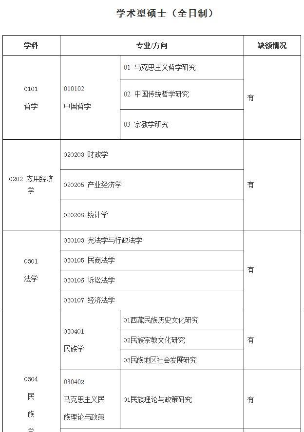 (5)民族地区公共管理研究(0304Z1)接受报考法学类(03)、公共管理一级学科(1204)的考生调剂。