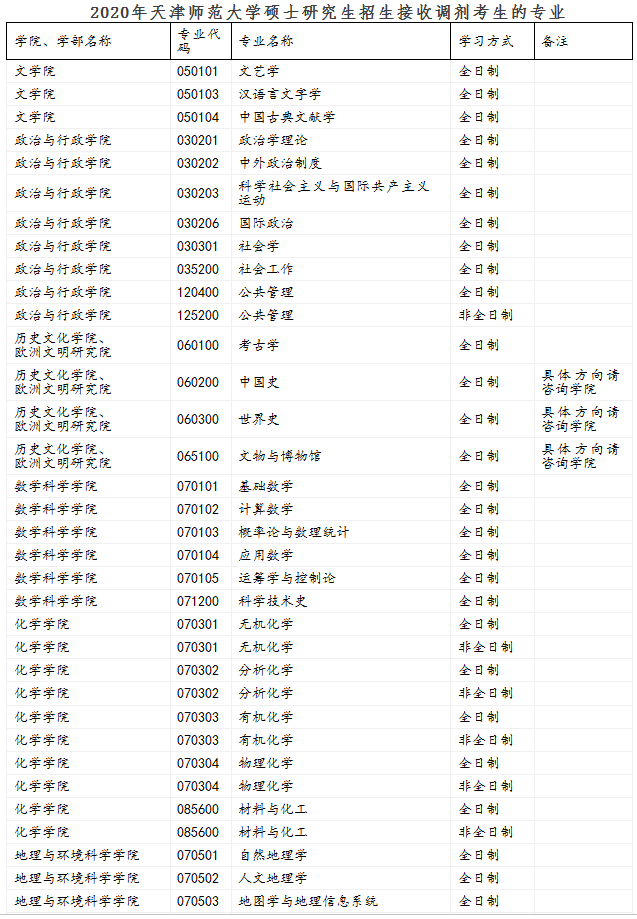 根据《2020年全国硕士研究生招生考试考生进入复试的初试成绩基本要求》及2020年我校一志愿考生初试情况,我校部分专业可接收调剂考生(详见附表《2020年天津师范拼搏(中国)硕士研究生招生接收调剂考生的专业》),欢迎广大优秀考生申请调剂。