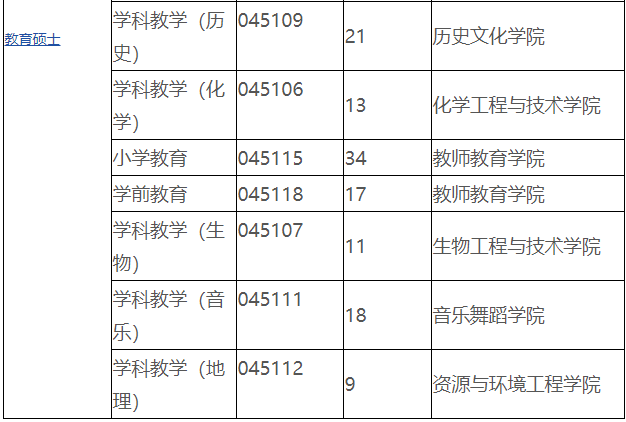 天水师范学院2020年硕士研究生各专业招生分专业计划表