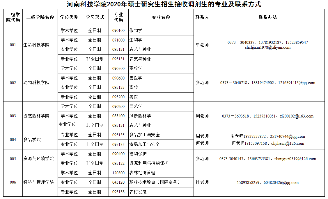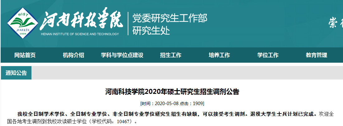 原标题:河南科技学院2020年硕士研究生招生调剂公告