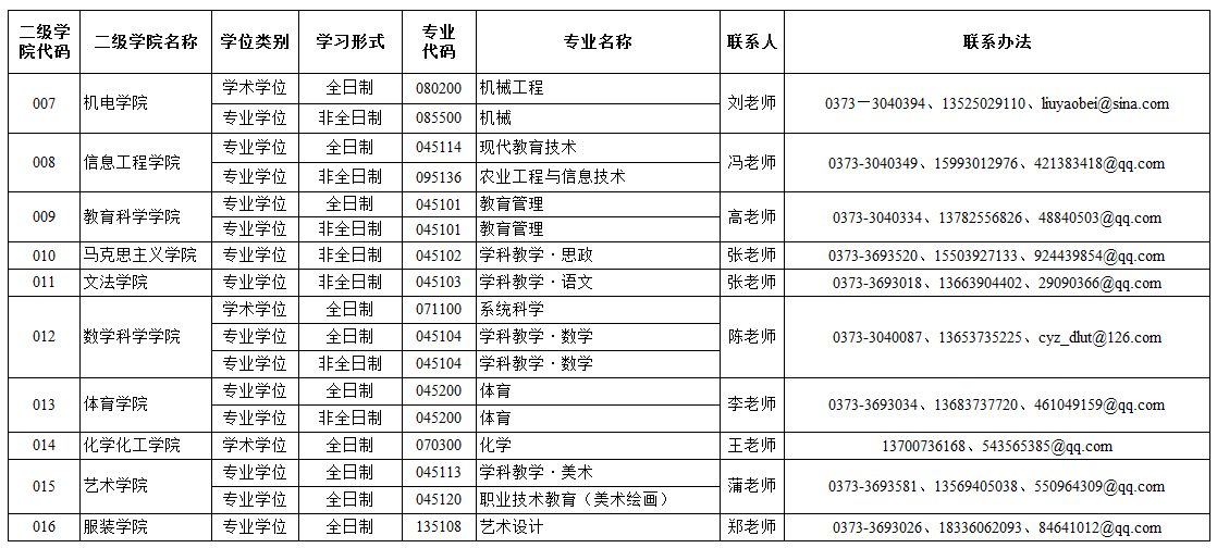我校以下专业接收调剂生,请符合条件的考生与报考专业所在学院的研究生秘书联系。详见下表。