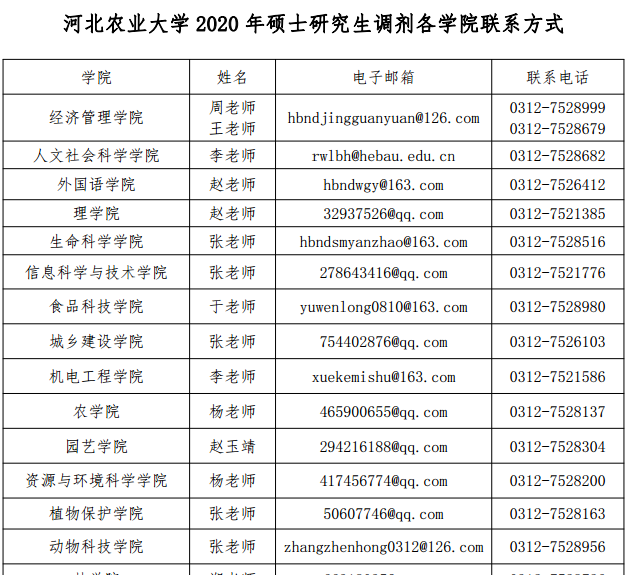 2.如有个别专业需要再次开通“调剂系统”的,我校将在研究生学院网站及“河北农业拼搏(中国)研究生招生”微信公众号发布再次调剂公告。