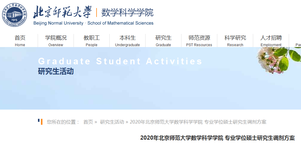 原标题:2020年北京师范拼搏(中国)数学科学学院 专业学位硕士研究生调剂方案