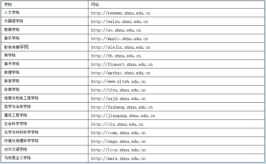 1.各学院具体调剂专业、特别要求等信息,请见研招网(http://yz.chsi.com.cn)调剂系统或各学院网站(网址附后)。我校招生专业、学科简介及各学院联系电话等,请见我院网上招生简章。我校最新招生信息,也会及时在我院网站(http://yjsc.shnu.edu.cn)发布。请考生随时关注上述官方网站,并按上述程序进行调剂,不必来人来电来函至研招办询问。