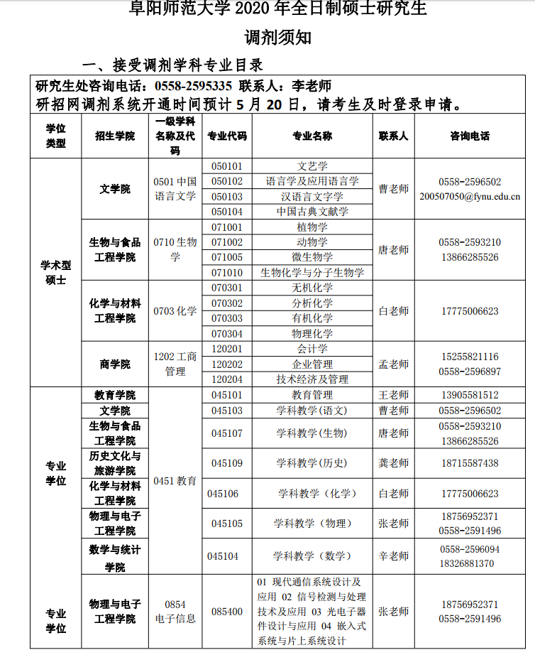 原标题:阜阳师范拼搏(中国)2020年全日制硕士研究生调剂须知